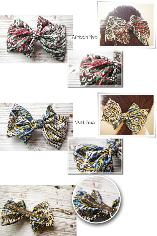 【海外買い付けのため数量限定☆】ビビッドプリント-リボン型バレッタ(2 color)(ヘアアクセサリー)【かわいい/カラフル/アフリカン/ビビッド/ワンポイント】
