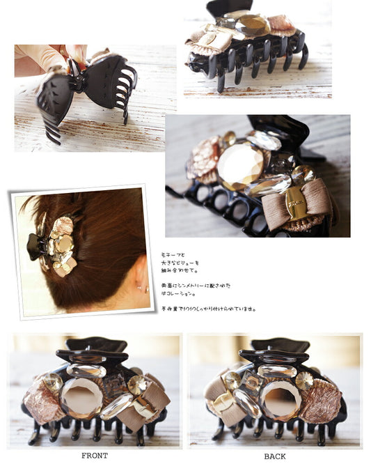 モチーフとビジューいっぱいのヘアクリップ(ヘアアクセサリー)【バレッタ/フォーマル/アップヘア/ヘアアレンジ】【レディースアクセサリー】【メール便不可】【クリスマス/ギフト】【HAND MADE/手作り】