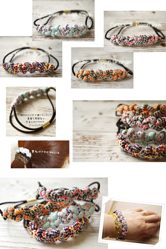 海外買い付け☆コード編み込み2連ヘアゴム(4 color)(コード使い/ヘアアクセサリー)【スポーツ/かわいい/カラフル/ブレスレット】【レディースアクセサリー】【数量限定】【ギフト】