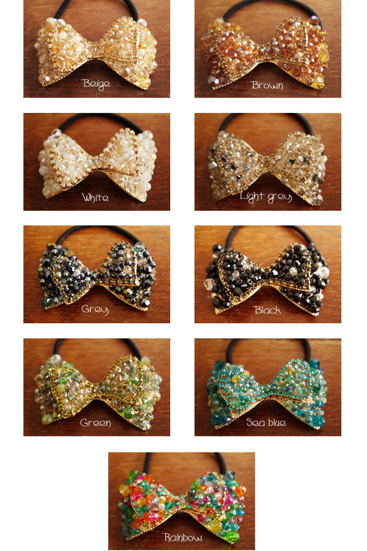 【送料無料】【数量限定】海外買い付け☆リボン型デコヘアゴム(9色)(ヘアアクセサリー)【パーティー用】【ビーズ/ビジュー/大人かわいい/ブレスレット】【HAND MADE/手作り】