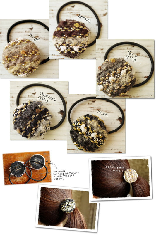 【残りわずか】【当店オリジナル】ツイードヘアゴム(5色)(ヘアアクセサリー)【ウール/ネップ/大人かわいい/ブレスレット】【クリスマス】【HAND MADE/手作り】【数量限定】【ギフト】