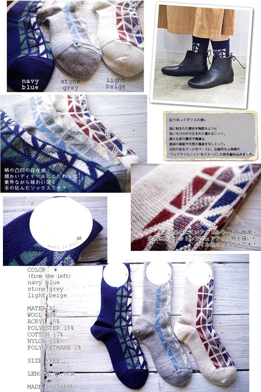 meri ja kuu(メリヤクー)*"並木の旅路" ソックス mj-18310(3色)【2018-19年秋冬☆数量限定生産】