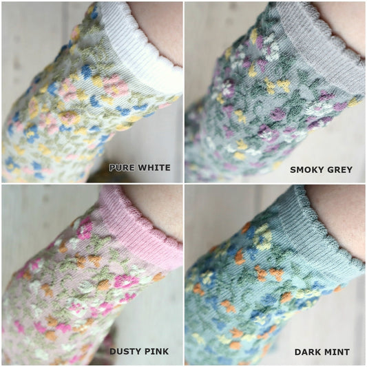 DUSTY FLOWER SOCKS ダスティフラワーコットンソックス(4色) 【2025年春夏 数量限定 綿 ダスティカラー 程良い厚み 凸凹 立体的 フロッキー ワッフル ジャガード編み 韓国】