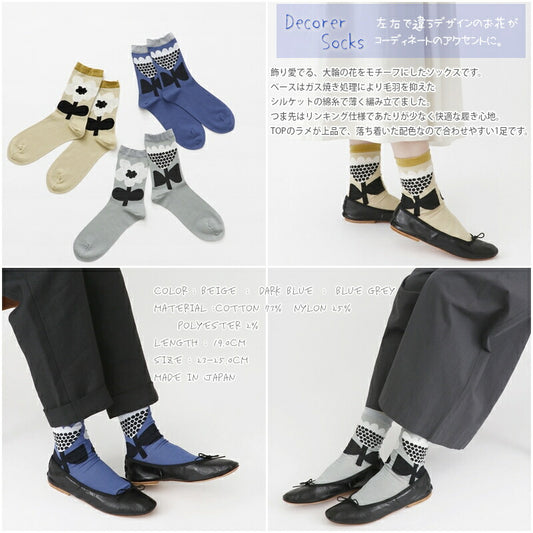 French Bull(フレンチブル)No.11-24253 カルメソックス(3色)【24-25秋冬 花柄 左右違う柄 光沢感 シルケット綿糸 日本製】