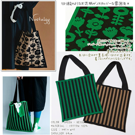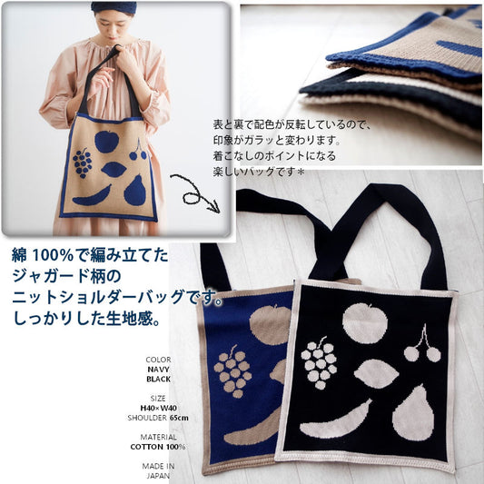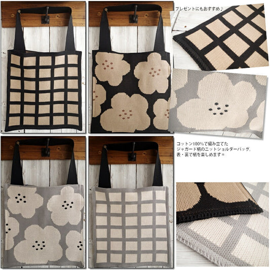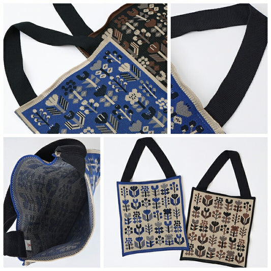 French Bull(フレンチブル)No.33-24251 ボタニーバッグ(2色)【24-25秋冬 植物モチーフ 2way 度詰めに編み立て 柔らかい綿糸 ジャガード柄 ニットバッグ 日本製】