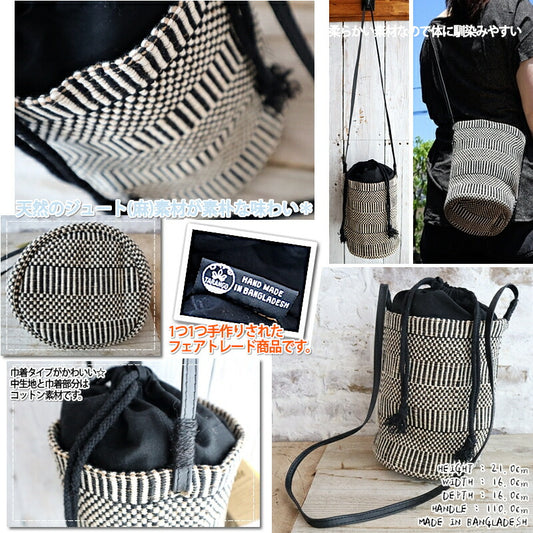 TARANGO(タランゴ) 【2022年春夏☆少量入荷!送料無料!】【FAIR TRADE/MADE IN BANGLADESH】ジュートショルダーかごバッグ(2柄)【フェアトレード/ショルダーバッグ/かごバッグ/夏バッグ/エコ/カジュアル/モノトーン】【手作り/HAND MADE】