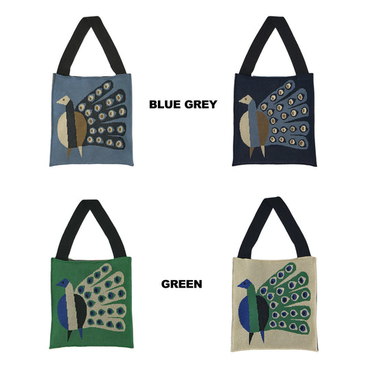 French Bull フレンチブル No.33-25101 クジャクバッグ(2色)【2025年春夏 ポップなクジャク柄 ニットバッグ 2Way ジャガード編み 大きめ ショルダー 斜め掛け 両面使い日本製】