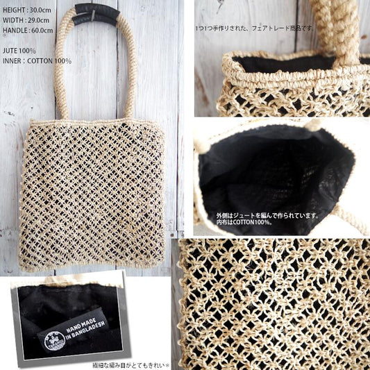 TARANGO(タランゴ) 【FAIR TRADE/MADE IN BANGLADESH】NB-302 JUTE SQUARE TOTE BAG/ジュート スクエアトートバッグ(2色)【フェアトレード/ショルダーバッグ/バケーション/かごバッグ/夏バッグ/エコ】【手作り/HAND MADE】