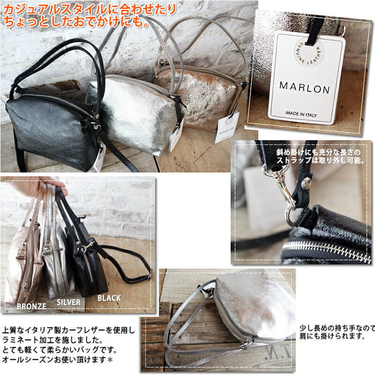 MARLON FIRENZE(マーロンフィレンツェ)【MADE IN ITALY】BS0795(BORSA ART.NIWA LAMINATO)メタリックレザー2WAYショルダーバッグ(3色)【牛革/レザー/手提げ/斜め掛け/ポシェット/ボディバッグ】