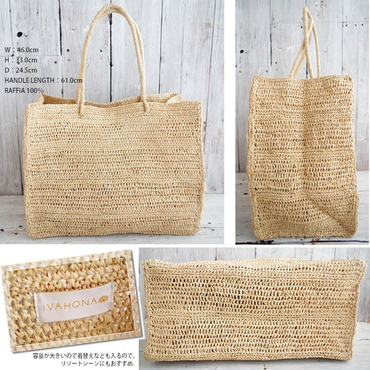 IVAHONA(イヴァオーナ/イヴァオナ/イバオナ)「PALME」ラフィアトートバッグ(1色)【ショルダーバッグ/バケーション/かごバッグ/夏バッグ/エコ/カジュアル】【手作り/HAND MADE】【少量入荷】【送料無料】【MADE IN MADAGASCAR】