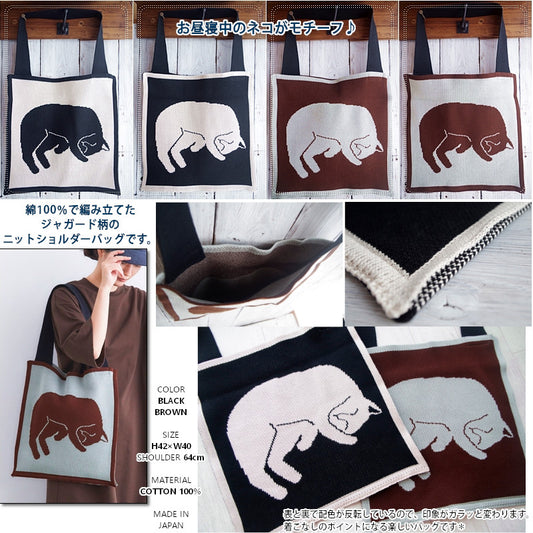 French Bull(フレンチブル)No.33-03212 シエスタバッグ(2色)【数量限定生産!日本製】【コットン100%ニット ネコ モチーフ 大きめ ショルダー 斜め掛け 両面使い】