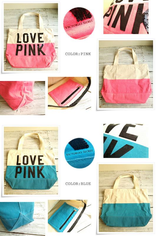 Victoria's Secret(ヴィクトリアシークレット)『PINK』【国内未上陸ブランド】数量限定!『LOVE PINK』スパンコールキャンバスBIG☆ビッグトートバッグ(スパングル)【送料無料】