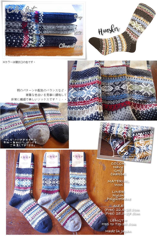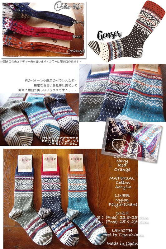 CHUP(チュプ)【数量限定生産】"GENSER(ゲンサー)"ノルディック柄ソックス(3色)【S/M/メンズ/レディース】【日本製】