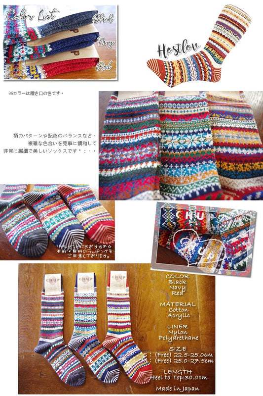 CHUP(チュプ)【数量限定生産】"HOSTLOV(ホスロ)"フェアアイル柄ソックス(3色)【S/M/メンズ/レディース】【日本製】