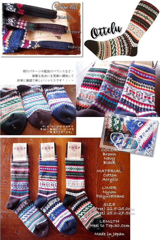 CHUP(チュプ)【数量限定生産】"OTTELU(オッテル)"フェアアイル柄ソックス(3色)【S/M/メンズ/レディース】【日本製】
