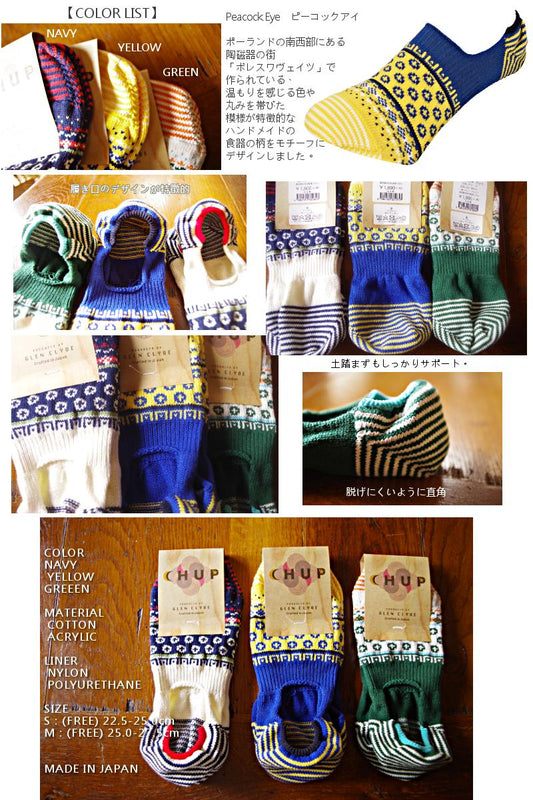 CHUP(チュプ)"Peacock Eye(ピーコックアイ)"【数量限定生産】カバーソックス(3色)【S/M/メンズ/レディース】【日本製】