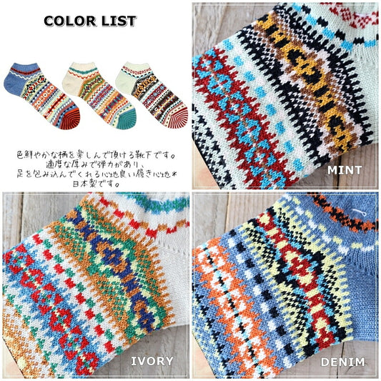 CHUP(チュプ)"SEANNOS(シャンノース)"フェアアイル柄アンクルソックス(3色)【数量限定生産】【日本製】【再入荷無し drynova(ドライノヴァ) ノルディック柄 海外人気】