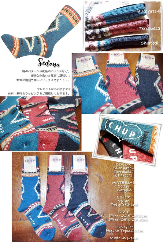 CHUP(チュプ)"Sedona(セドナ)"【数量限定生産】ネイティブアメリカン柄ソックス(3色)【S/M/メンズ/レディース】【日本製】