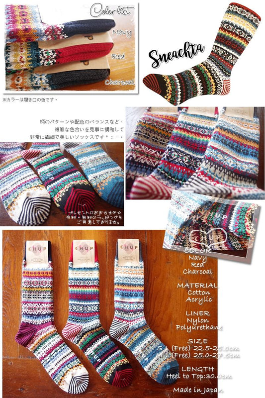 CHUP(チュプ)【数量限定生産】"SNEACHTA(シュナフタ)"フェアアイル柄ソックス(3色)【S/M/メンズ/レディース】