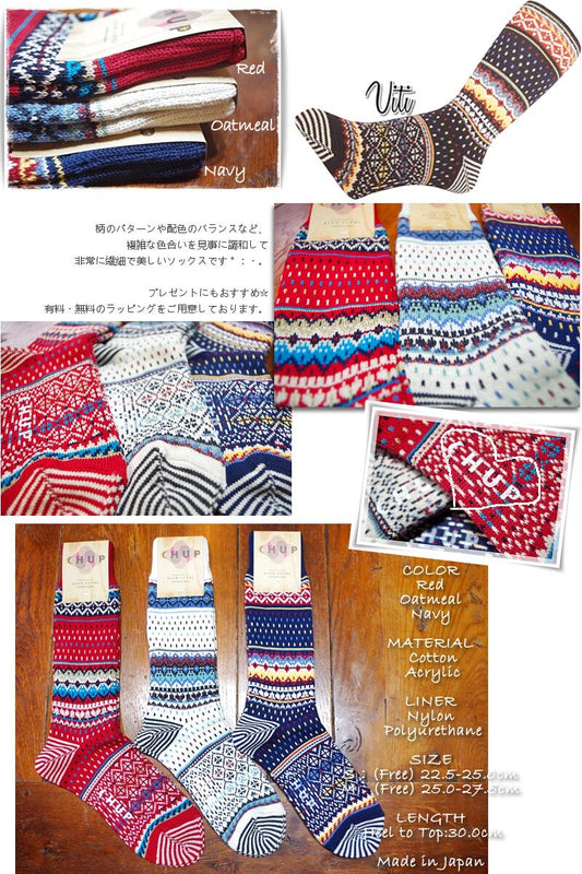 CHUP(チュプ)"Viti(ヴィティ)"【数量限定生産】フェアアイル柄ソックス(3色)【S/M/メンズ/レディース】【日本製】