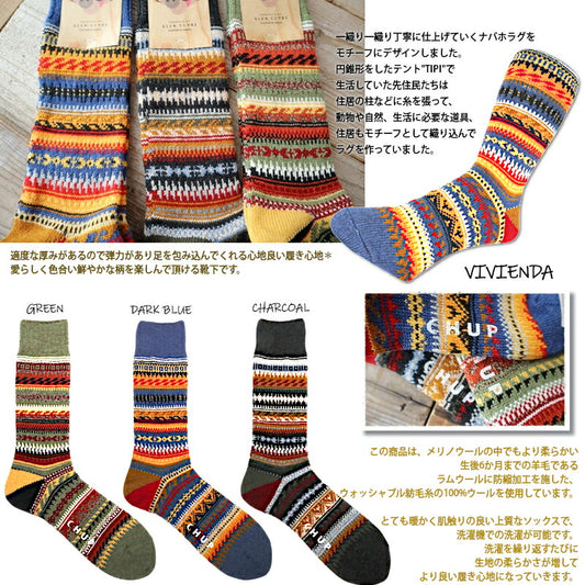 CHUP(チュプ)"VIVIENDA(ヴィヴィエンダ)"ネイティブアメリカン柄ソックス(3色)【数量限定生産】【日本製 MADEIN JAPAN】【再入荷無し ウォッシャブルウール メンズ レディース】
