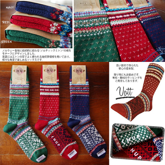 CHUP(チュプ)"VOTT(ヴォット)"【数量限定生産】【日本製】ノルディック柄ソックス(3色)【メンズ/レディース/フェアアイル】