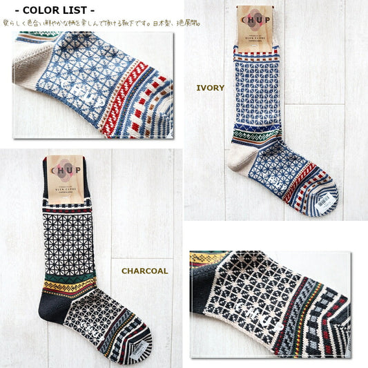 CHUP(チュプ)"Yo(ユオ)"【数量限定生産】【日本製】フェアアイル柄ソックス(3色)【S/M/メンズ/レディース/北欧】
