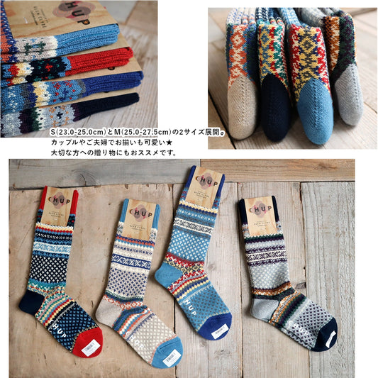 CHUP(チュプ) "COTSWOLDS(コッツウォルズ)" ソックス(4色×2サイズ) 【2025-26年秋冬☆数量限定生産 日本製 再入荷無し 丈夫 適度な厚み フェアアイル柄 ノルディック柄 ナバホ柄】