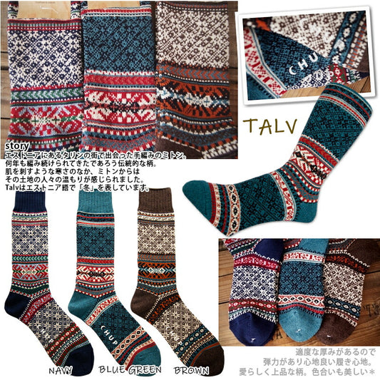 CHUP(チュプ)"TALV(タルブ)"【数量限定生産】【日本製/MADEIN JAPAN】ノルディック柄ソックス(3色)【再入荷無し/コーマ綿/丈夫/フェアアイル柄/S/M/メンズ/レディース】