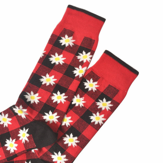 Mark McNairy x DEMOCRATIQUE SOCKS(マークマクナイリーxデモクラティックソックス)クルーソックス靴下 "Buffalo Daisy Spring Red" from Denmark Copenhagen【ユニセックス/メンズ】【コラボ ショートソックス】