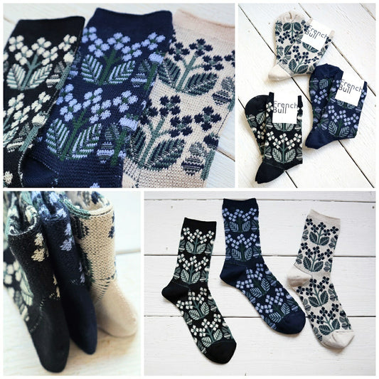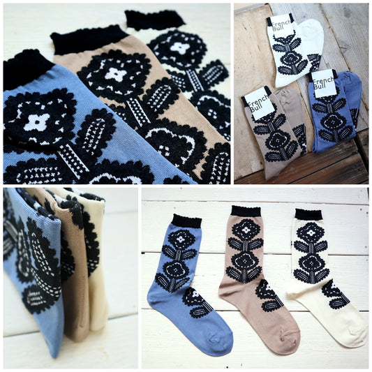 French Bull フレンチブル No.11-25114 ブルーメンソックス(3色)【2025年春夏 繊細な花柄が上品 落ち着いた配色 柔らかな綿糸 程良い厚み ジャガード編み 日本製】