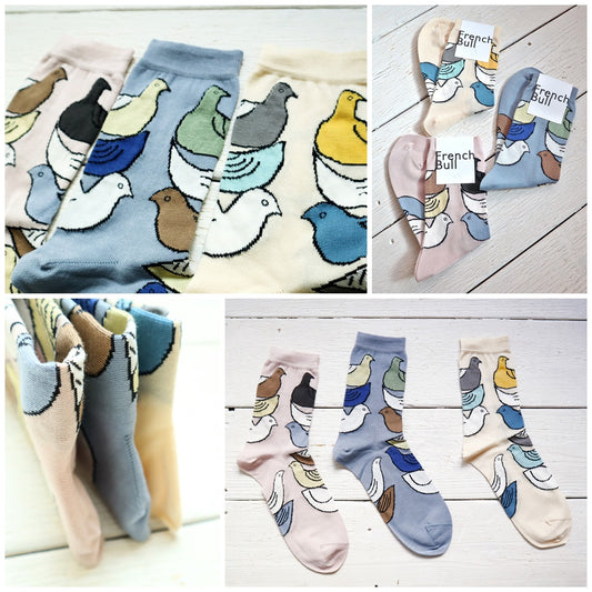 French Bull フレンチブル No.11-25102 シャンテソックス(3色)【2025年春夏 色とりどりの小鳥をモチーフ シルケットの綿糸 リンキング仕様 優しいトーン 日本製】