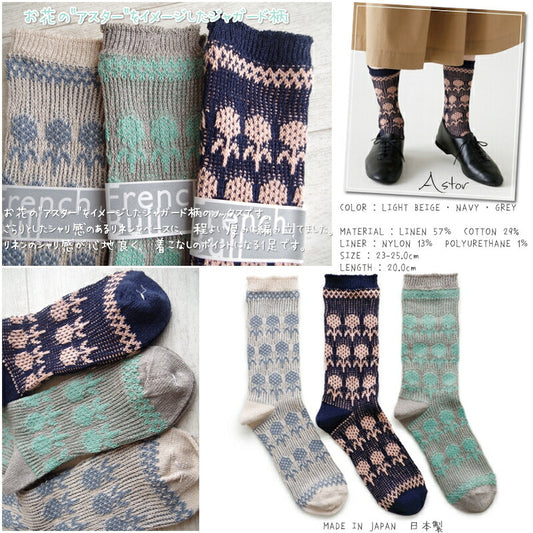 French Bull(フレンチブル)No.11-11221 アスターソックス(3色) 【麻リネン ジャガード柄 "アスター"をイメージ 身近な野草 モチーフ 冷えとり】