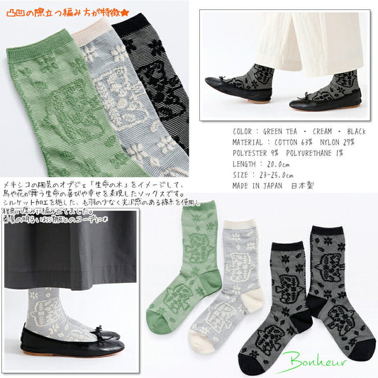 French Bull(フレンチブル)No.11-05231 ボヌールソックス(3色)メキシコの陶芸のオブジェ「生命の木」をイメージ 凸凹の際立つ編み方 シルケット加工 冷えとり】