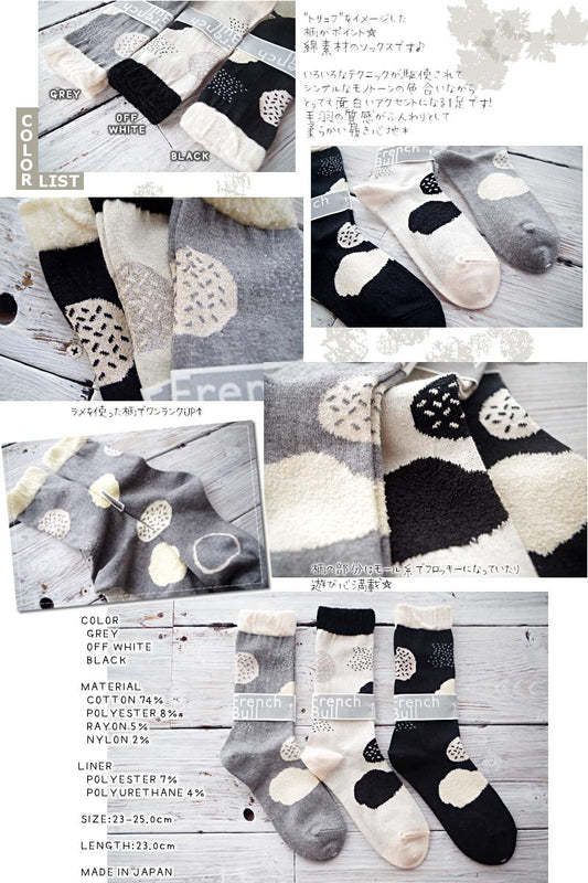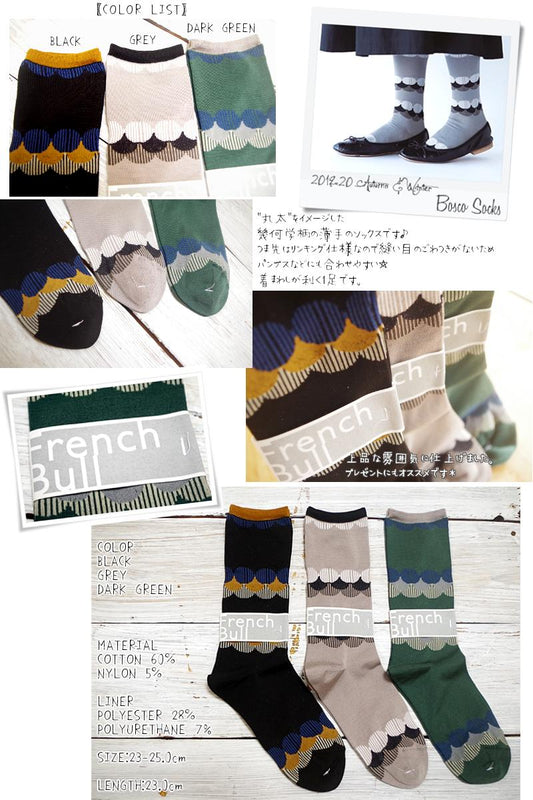 French Bull(フレンチブル)No.11-13192 ボスコソックス(3色)【2019-20年秋冬☆数量限定生産】 【綿コットン ドット 冷えとり 暖かい 幾何学柄】