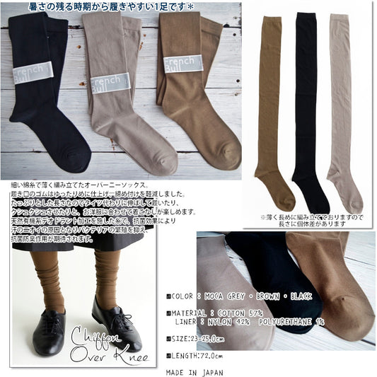 French Bull(フレンチブル)No.11-06212 シフォンオーバーニーソックス(3色) 【綿 天然有機系デオドラント加工 抗菌効果 抗菌防臭作用 すっきり 冷えとり】
