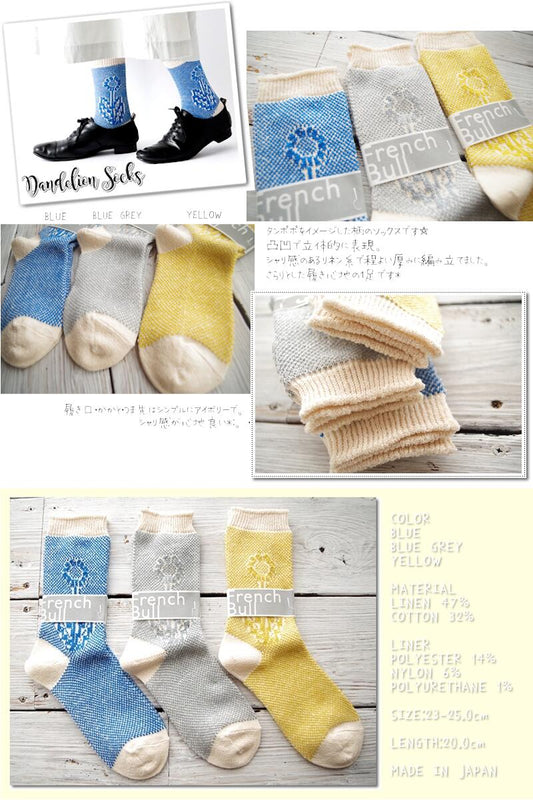 French Bull(フレンチブル)No.11-14201 ダンデライオンソックス(3色)【数量限定生産】 【コットンリネン 花柄 綿麻 冷えとり 無地】