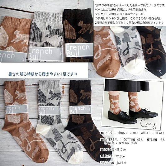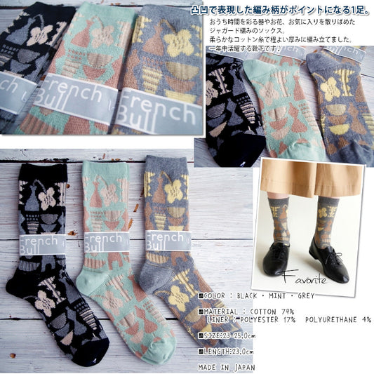French Bull(フレンチブル)No.11-04231 ベノワソックス(3色)【身近にある小さな幸せをモチーフ ジャガード編み 凸凹で表現 さらっとした艶のある綿糸 冷えとり】
