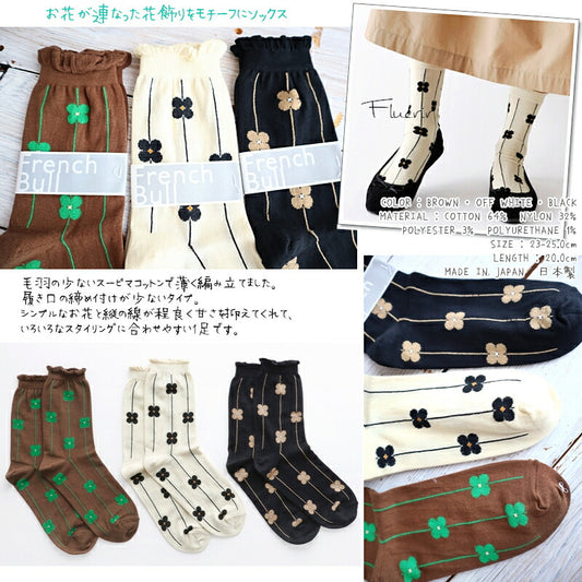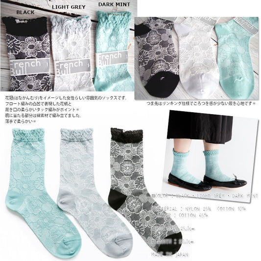 French Bull(フレンチブル)No.11-06222 フルリールソックス(3色) 【花飾りをモチーフ スーピマコットン 薄手 モチーフ 冷えとり】