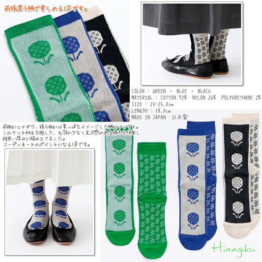 French Bull(フレンチブル)No.11-09231 ヒナギクソックス(3色) 【ヒナギク 雛菊のモチーフ 前後違う柄 シルケット加工 冷えとり】
