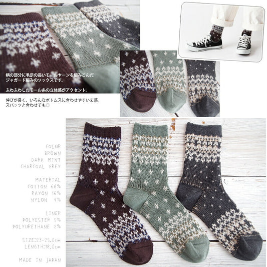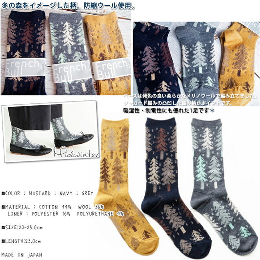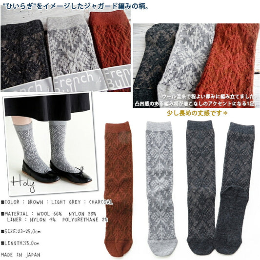 French Bull(フレンチブル)No.11-10212 ミッドウィンターソックス(3色) 【防縮ウール使用 ジャガード編み 北欧 モチーフ 吸湿性・制電性 冷えとり】