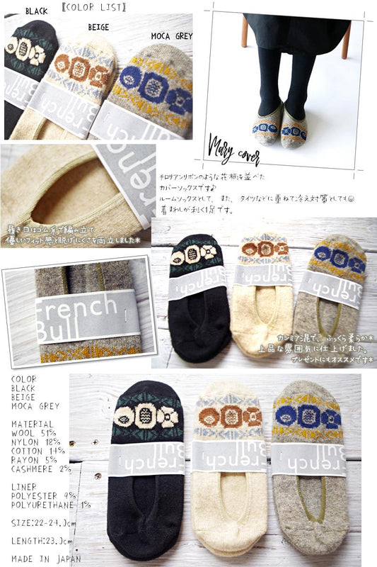 French Bull(フレンチブル)No.11-39192 コサージュカバー(3色)【2019-20年秋冬☆数量限定生産】 【カシミア 冷え対策 暖かい 冷え取り 重ね履き】