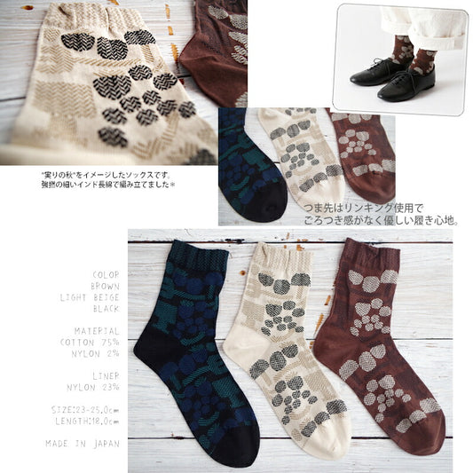 French Bull(フレンチブル)No.11-11192 トリュフソックス(3色)【2020-21年秋冬☆数量限定生産】 【きのこ 秋 幾何学柄 自然 綿コットン 冷えとり 暖かい】