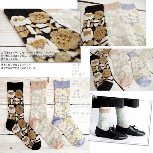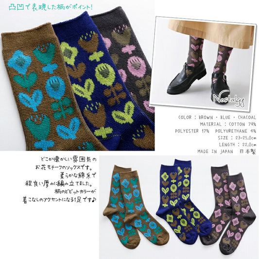 French Bull(フレンチブル)No.11-12222 ノスタルジーソックス(3色) 【お花モチーフ ビビットカラー 差し色 柔らかい綿糸 凸凹で表現した柄 冷えとり】