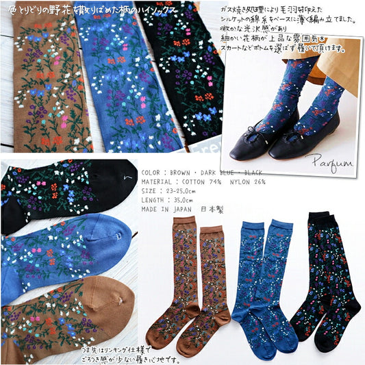 French Bull(フレンチブル)No.11-09222 パルファムソックス(3色) 【小花柄 ハイソックス ニーハイ シルケット リンキング仕様 薄手 モチーフ 冷えとり】