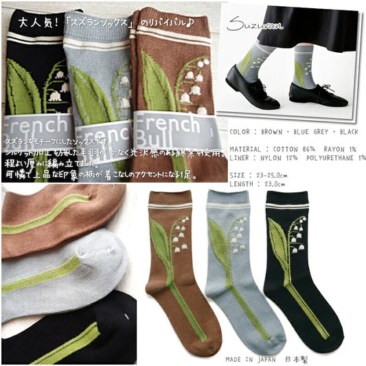 French Bull(フレンチブル)No.11-12191 スズランソックス(3色)【2022年春夏新作☆数量限定生産!】【スズラン柄 リバイバル シルケット加工 上品な印象の柄 モチーフ 冷えとり】