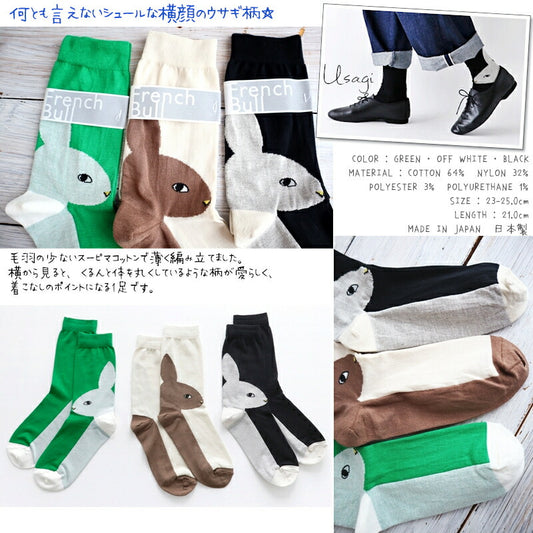 French Bull(フレンチブル)No.11-08222 うさぎソックス(3色) 【ウサギ柄 横顔 バイカラー配色 薄手 モチーフ 冷えとり】