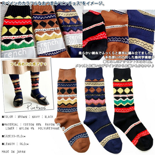 French Bull(フレンチブル)No.11-05212 ピンチョスソックス(3色)【2021-22年秋冬新作☆数量限定生産!】【カラフル 凸凹編み柄 少し長めの丈厚手 柔らかい綿糸 冷えとり】