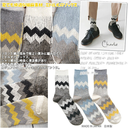Jake(ジェイク)【Men's メンズ レディース大きめ】French Bull(フレンチブル)No.21-02221 チャーリーソックス(3色)【リネンコットン シャリ感 冷えとり】