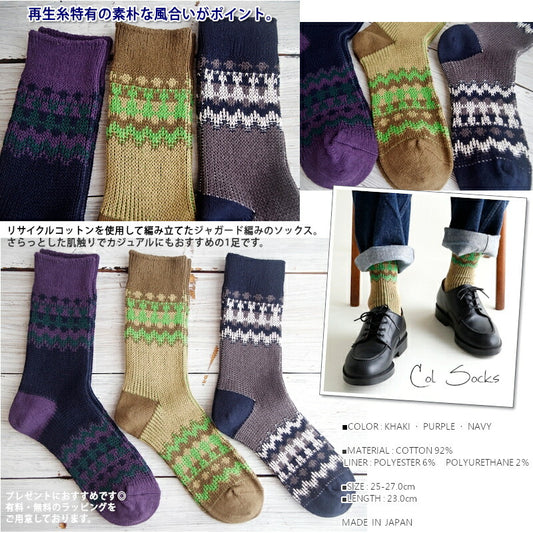Jake(ジェイク)【Men's メンズ レディース大きめ】French Bull(フレンチブル)No.21-02212 コルソックス(3色)【数量限定生産!】【リサイクルコットン ジャガード編み 日本製】